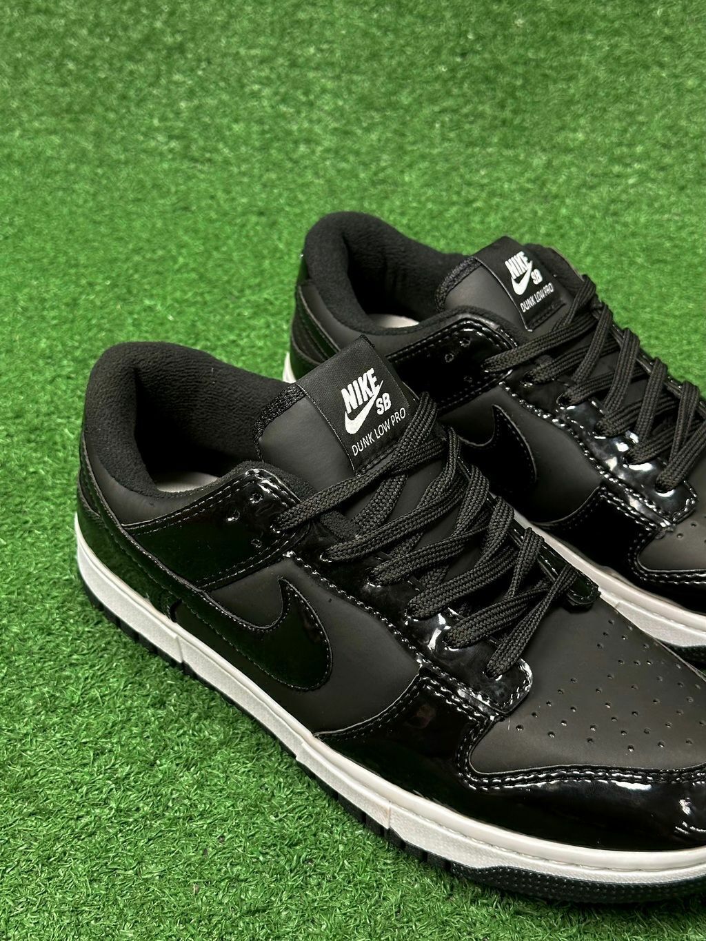 Em um esquema de cores clássico Black. Este Nike Dunk Low apresenta uma parte superior de couro liso Black e sobreposições White.